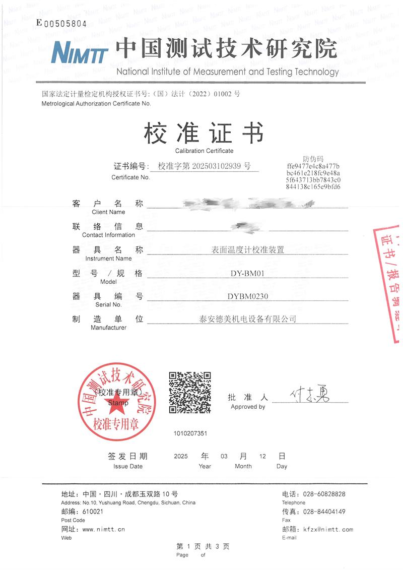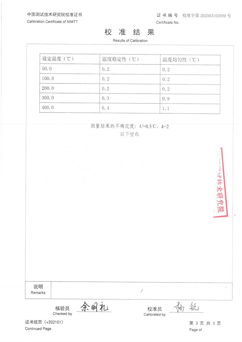 上一條:中溫黑體爐(50~700℃)校準(zhǔn)證書 | 下一條:超低溫面源黑體爐(-40-80℃)校準(zhǔn)證書 |