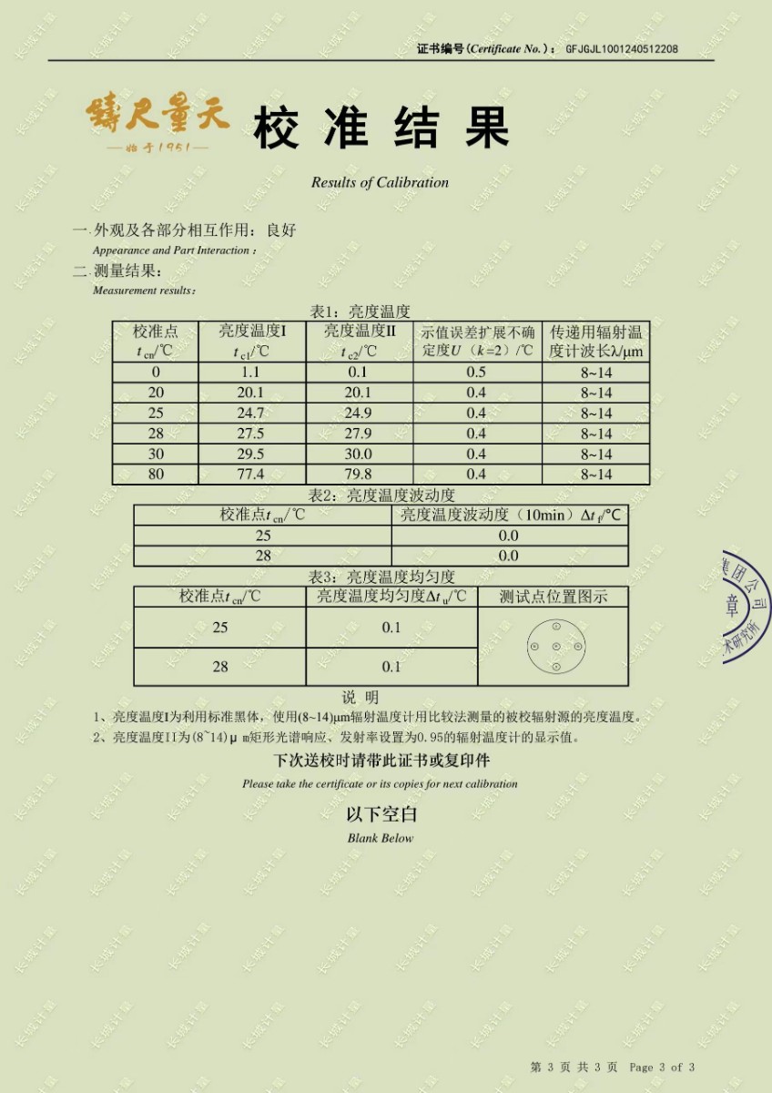 上一條:高精度低溫黑體234校準(zhǔn)證書下一條:超低溫面源黑體爐(-40-80℃)校準(zhǔn)證書