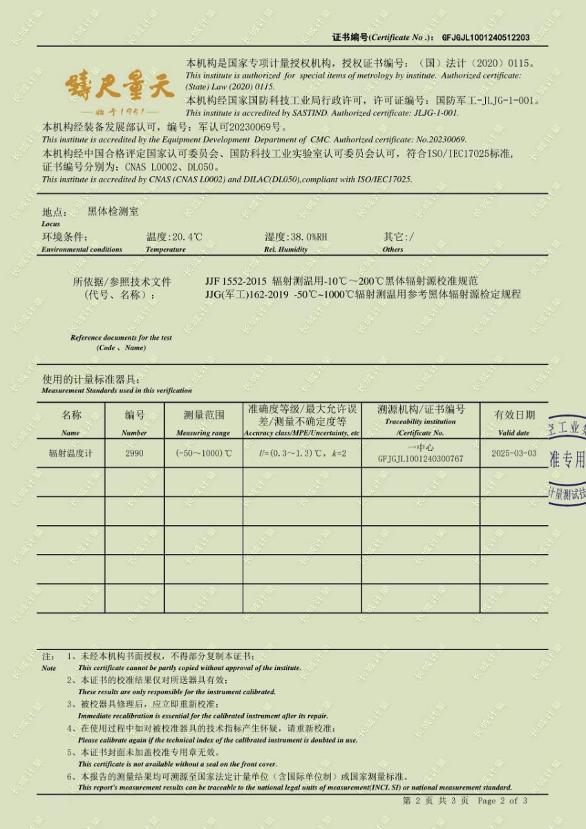 高精度低溫黑體241校準(zhǔn)證書(shū) 2024-5-31 本文被閱讀 6588 次