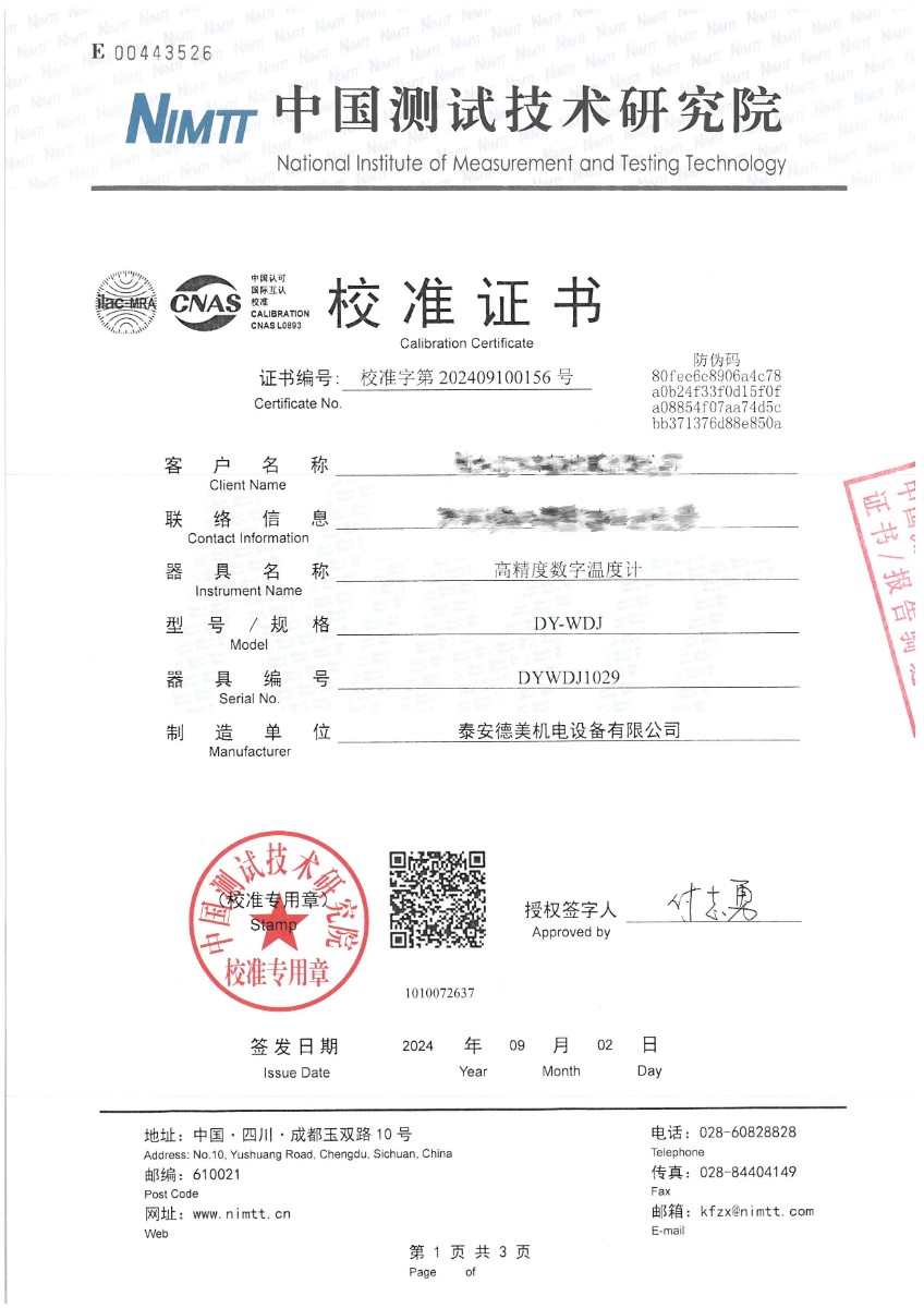 | 上一條:DY-HT1MA低溫面源黑體爐,輻射面100mm(-20℃~80℃) | 下一條:便攜式干體爐(-30-150℃)校準(zhǔn)證書(shū) |